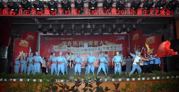 10月16日晚,医药卫生学院“学在医药 奠基人生”微信平台推广启动仪式暨2015年新生文艺晚会在大学生活动中心隆重上演。晚会上,师生们倾情献艺,用精彩纷呈的节目,为在场观众献上了一场歌舞盛宴。校党委委员、工会主席郑柏松,副校长、医学院院长刘东山,校团委书记杨勇,医学院全体领导班子出席了本次晚会。一同观看晚会的还有各个学院的近千名师生。