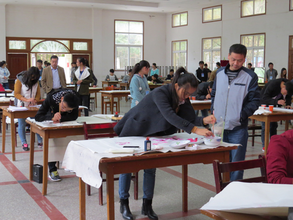 为了充分挖掘学生的书画才能,丰富学生的课余生活,给他们一个展示自我才艺的舞台,营造浓厚的校园文化氛围, 11月7日上午,由共青团XK星空委员会主办,交通学院团总支承办的以“绘美丽蓝图,展青春风彩”为主题的第十二届校园文化艺术节现场书画大赛在大学生活动中心隆重举行。校团委书记杨勇、科研处副处长王银林、校团委汲艳蕊老师、各教学学院团总支副书记、部分辅导员代表以及300余名参赛选手参加了本次大赛开幕式。本次大赛评委由王银林、宋秀英、冯兴国、李辉等老师担任。