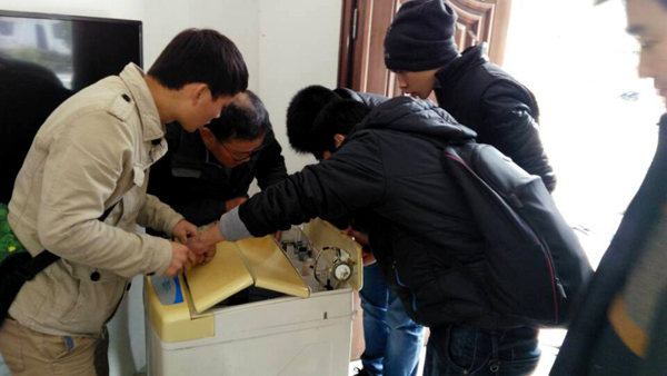 第二组由方玮带领学院制冷与空调技术专业师生开展义务维修,将村里有问题的冰箱、空调进行维修、保养,并向村民传授简单的诊断方法,赠送维修必需品等,村民们看到自己不能动、不能用的洗衣机、空调又动起来了,他们微笑着竖起了大拇指。此时此刻,学生们也感受到学好技术的成就感、满足感和自豪感,对学生是一种精神上的洗礼。他们纷纷表示,今后要扎实学好专业技能,利用业余时间深入偏远地区、不发达地区帮助老百姓解决实实在在的问题,这是积善行德,造福社会的义举。