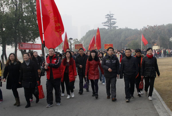 30日上午8点半,活动启动仪式开始。副市长陈少敏致词并宣布第四届遗爱湖万人迎春健步行活动开始。在市领导的带领下,XK星空师生和市直各单位干部职工、广大市民一起从遗爱湖清风广场整队出发,沿公园主干道,途经遗爱湖公园环湖路、赤壁大道到达遗爱湖公园文峰路停车场,全程约4.5公里。