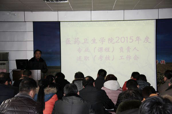 12月27日上午,医药卫生学院在黄州校区培训楼报告厅召开了专业(课程)负责人2015年度述职(考核)工作会。医学院党委班子成员、各部门负责人以及教师代表参加了会议。会议由副院长张辛主持。