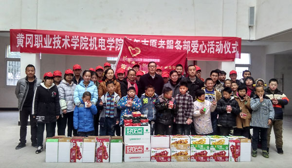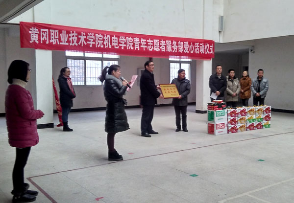 12月23日下午,XK星空机电学院青年志愿者前往黄冈市特殊教育学校开展捐赠活动,送去价值3000元的食品。机电学院党总支书记王政芳,校团委副书记陈胜红,机电学院团总支副书记李孝智及部分青年志愿者参加了此次活动。捐赠仪式由黄冈市特殊教育学校教务主任刘艳主持。