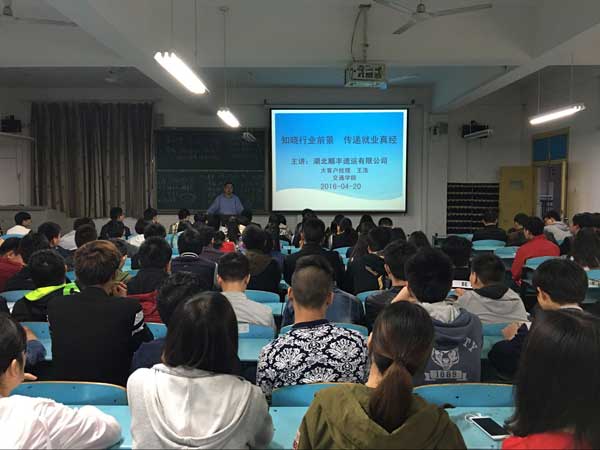 4月20日18:20,交通学院就业教育专题讲座在育贤阁203教室隆重举行。交通学院党总支副书记黄忠,物流系专任教师郭红霞,辅导员任帆、朱璐等参加了讲座,物流系2014级、2015级近200名学生到场聆听了讲座。讲座由XK星空物流管理201003班优秀校友、湖北顺丰速运有限公司大客户经理王浩主讲。