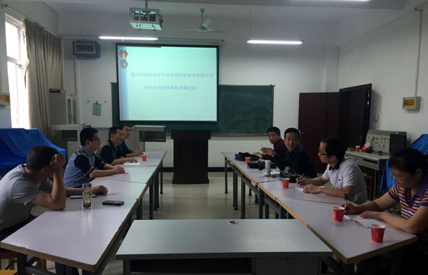 5月7日上午9:00,黄冈市华窑中博窑炉技术有限公司董事长黄四清、技术副总张红安一行7人来XK星空培训交流。机电学副院长黄国祥,学校质量管理处目标考核办公室副主任宋武、机电学院实训中心副主任马中秋、骨干教师杨芳参加了培训交流活动。培训交流活动在汇贤阁1308传感器实训室举行。培训交流活动由华窑中博窑炉技术有限公司办公室主任兼贸易副总方承恺主持。