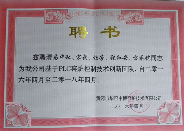 基于PLC窑炉控制技术创新团队聘书