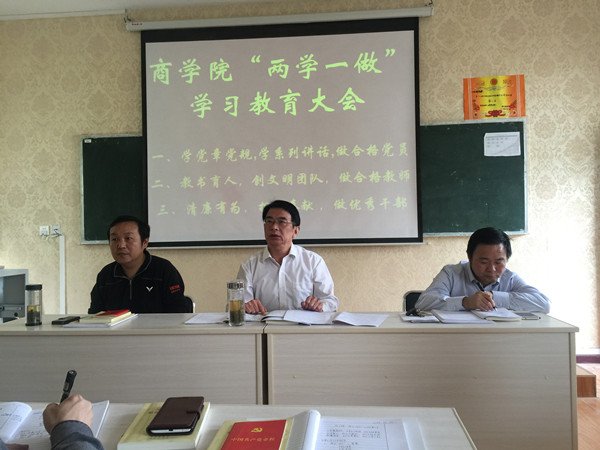 结合商学院党风廉政建设,白颢指出本次学习教育大会的主要内容是:一、学党章党规,学系列讲话,做合格党员;二、教书育人,创文明团队,做合格教师;三、清廉有为,担当奉献,做优秀干部。他提出全体党员要明确“两学一做”目标任务,掌握“两学一做”方式方法,弄清“两学一做”规定动作;并对普通党员和党员干部提出了具体要求。