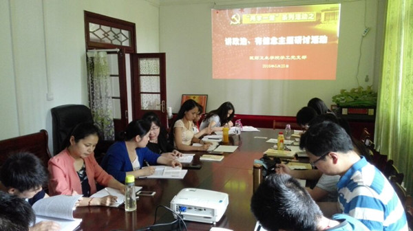 5月25日下午,医药卫生学院学工党支部在尚智楼会议室召开“两学一做”学习教育第一次专题“讲政治、有信念”学习研讨会,会议由医药卫生学院学工党支部组织委员、纪检委员曹俊峰主持。
