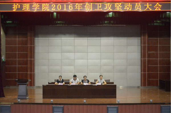 9月13日下午16:00,护理学院在学术报告厅组织召开创卫攻坚动员大会。护理学院班子成员、专业主任、专兼职教师、辅导员和各年级500名学生代表参加了会议。会议由饶凤英主持。