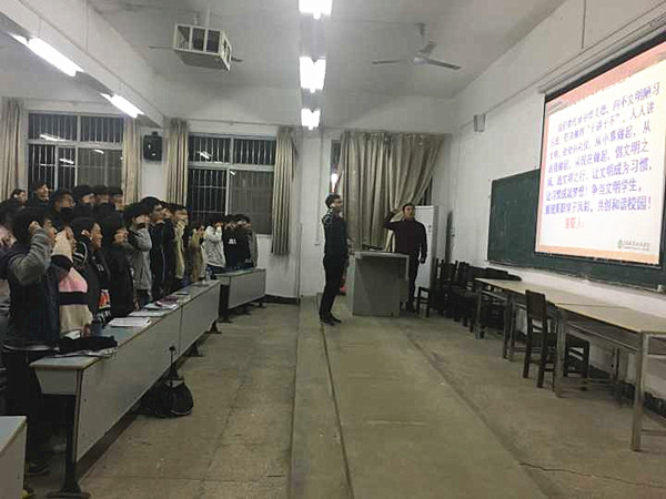 10月24日—10月28日,各班级在学院活动方案框架下,发出“讲文明、除陋习、知礼仪、树新风”倡议,利用主题班会、主题团日活动进行深入宣讲,并开展 “告别陋习、握手文明”,学生宣誓和手抄“十讲十不”等活动,号召广大学生提高文明礼仪意识,除掉身上不良习惯,自觉维护校园和谐环境。