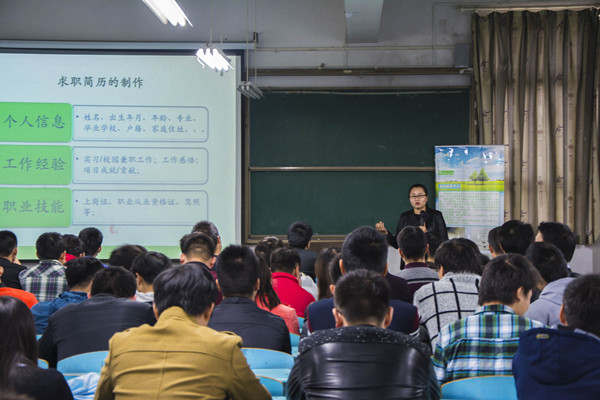 招聘会期间,建筑学院邀请湖北正茂新材料科技股份有限公司人力资源部经理关丽华、山河建设集团人力资源主管匡亦成、XK星空优秀校友、广东联泰集团物资部经理赵又林开展鲁班讲坛之就业形势报告与应聘技能实训活动。