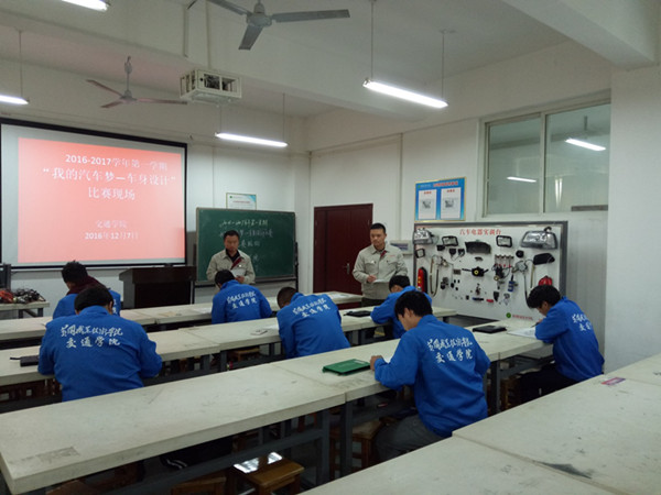 2016年12月7日,交通学院汽车系在汇贤阁举行汽车类专业的技能月决赛活动。活动包括汽车检测与维修专业“新车PDI检测技能大赛”、汽车营销与服务专业“汽车营销大赛”、汽车制造与装配技术专业“汽车装配工具快速识别大赛”、汽车车身技术专业“我的汽车梦--车身创意设计大赛”。