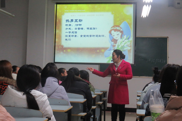 为了帮助女生更好的了解自我、保护自我、发展自我,2016年12月19日晚18:20,交通学院在育贤阁414举办了《让青春之花美丽绽放》为主题的女生生理健康知识讲座,讲座由护理学院党总支书记王莹华教授主讲,2015级、2016级全体女生聆听了讲座。