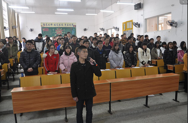 在学生代表动员大会上,党总支副书记汤城以诚信考试、诚信做人为主线进行了动员,首先,他带领全体学生代表重新学习了学籍管理“358”补充规定及《XK星空学生违纪处分细则》第二十一条,最后他希望每位学生:提高认识,诚信应试;认真复习,提前准备;端正考风,郑重承诺。在动员会结束前,营销201601班学习委员桂伟同学带领全体学生代表宣誓,郑重承诺遵守考场纪律,诚信应试。