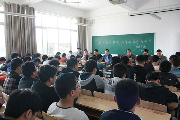 4月13日下午14:00,交通学院分别在育贤阁505、506、507、508教室召开师生面对面座谈会,学工处处长熊楚舒,教务处副处长周源,质量管理处副科长宋武,交通学院党总支书记钟彬杉,党总支副书记黄忠、副院长聂进及近200余名师生参加了座谈会。