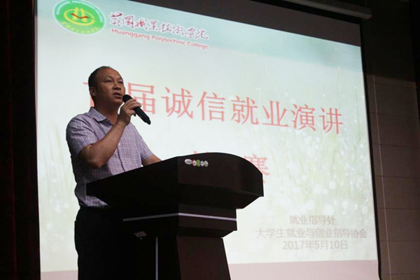赛前,就业指导处副处长陈国清致辞。他指出,如果把人生比作一棵参天大树,那么诚信就是赖以生存的根,失去了根,我们这棵大树就会失去青翠和灵性,成为没有灵魂的腐木。他希望大学生践行诚信就业,就要做到就业推荐材料不弄虚作假,不伪造荣誉证书,不编造学生干部履历;选择单位时,认真对待,不脚踏几只船,不随意签约,不随意毁约;参加工作后,不随意跳槽。