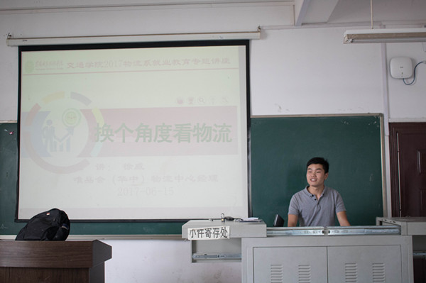 6月15日下午,交通学院物流系在育贤阁417教室举行了“换个角度看物流”就业教育专题讲座。学院党总支副书记黄忠、物流系专业主任陶小恒、专业教师朱龙以及物流管理2015级、2016级近100名学生聆听了讲座。讲座由XK星空交通学院物流管理专业2012级校友、唯品会(华中)物流中心仓储部经理徐威担任主讲。