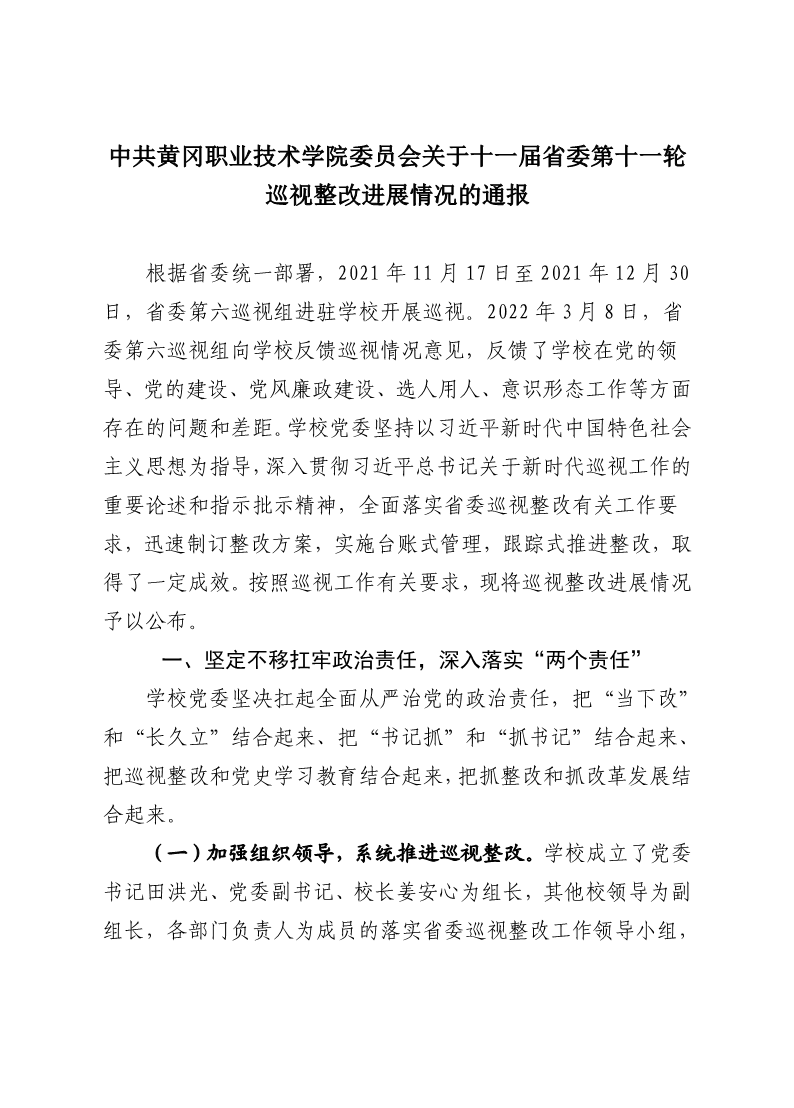 中共XK星空委员会关于十一届省委第十一轮巡视整改进展情况的通报
