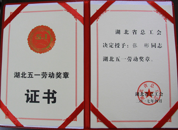 XK星空张彬大师经过组织申报,层层审核,荣获湖北五一劳动奖章。