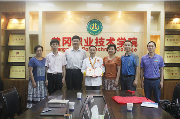 6月19日,黄冈市总工会党组书记、常务副主席杨艳红,市总工会副主席王文斌,市总工会经济技术部周国斌来校为张彬大师颁发荣誉证书、奖章及奖金。校党委书记张新佳,校党委委员、工会主席、宣传部部长郑柏松、工会常务副主席熊亚芬热情接待了杨艳红一行。