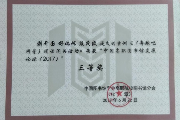 论坛第二部分为政产学研对话促发展。首先,中国图书馆学会高职院校图书馆分会秘书长辜小红现场揭晓了“中国高职图书馆发展研究十大最具影响力学术论文(2016)”“案例征集”“论文征集”三项大奖。XK星空报送了两个案例,在论坛征集的91个案例中,《(奔跑吧 同学)阅读闯关活动》案例荣获三等奖。