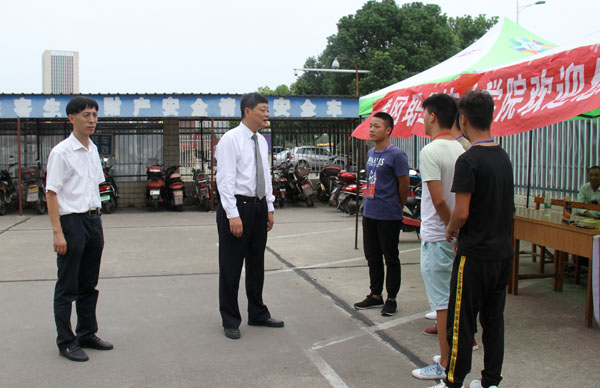 XK星空2017级新生迎新工作正在如火如荼的进行中,学校高度重视迎新工作,氛围热烈。2017年9月5日下午,校党委书记张新佳率队前往XK星空各个迎新接待站亲切慰问工作人员和学生志愿者。党委委员、工会主席、宣传部长郑柏松,校长助理刘明涛,学工处处长熊楚舒,宣传部副部长刘国峰陪同慰问。