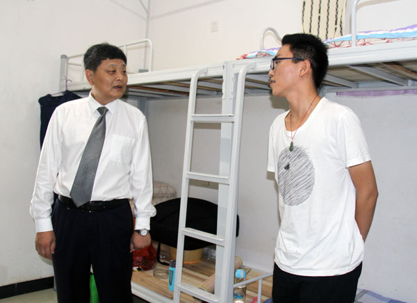 9月5-6日,党委书记张新佳、校长姜安心等校领导在各教学学院和职能部门负责人的陪同下深入学生宿舍,看望慰问2017级新生。