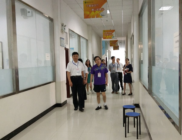 市人社局领导、教务处处长胡亚学、商学院院长周常青巡视考场