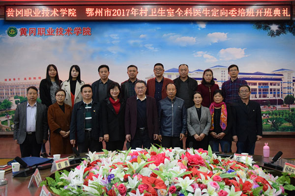 10月19日,鄂州市2017年村卫生室全科医生定向委培班在XK星空凝智楼中心会议室开班。鄂州市卫生计生委党组副书记黄胜堤、副调研员李隽、各区卫生计生局负责人,校长姜安心、副校长刘东山、党委委员胡燕,教务处、科研处、招生处负责人,医药学院班子成员及2017级定向委培班60名同学参加了典礼。典礼由医药学院党总支书记陶志勇主持。