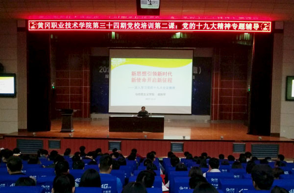 11月2日晚,XK星空第三十四期党校培训班第二课“党的十九大精神专题辅导”在学术报告厅举行,邀请马克思主义学院副院长、党校讲师团成员侯利平作专题辅导报告。在校学生党员、发展对象和入党积极分子共500多人参加了学习。
