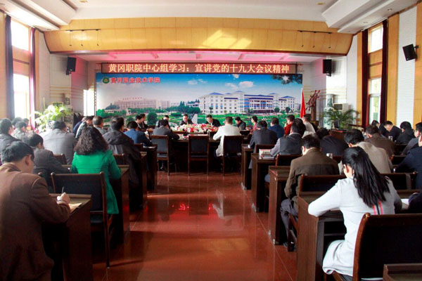 11月6日上午,在学校中心会议室,校党委理论学习中心组召开扩大会议,集中学习党的十九大会议精神。会议由校长姜安心主持,党委书记张新佳作报告,全体校领导、中层干部、副县级干部、各党支部书记、团总支书记、民主党派人士代表共100多人参加了学习。
