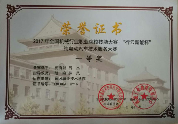 2017年11月4-5日,由全国机械职业教育教学指导委员会和机械工业教育发展中心主办,行云新能科技(深圳)有限公司承办的全国纯电动汽车技术服务大赛在南京交通职业技术学院举行。全国共有来自16个省、直辖市的86所学校,近500名师生参加了此次比赛。
