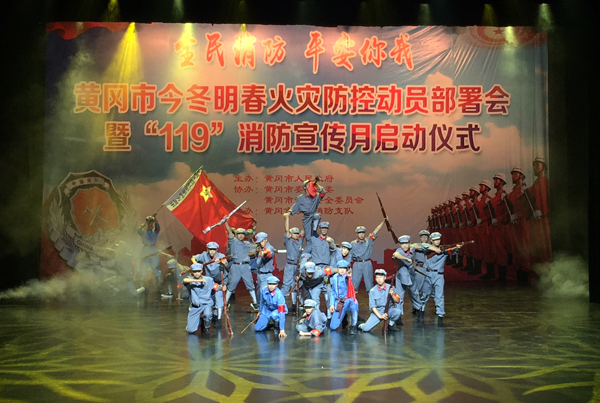 校团委、学工处组织大学生艺术团20名同学积极配合黄冈市公安消防支队,排练全市今冬明春火灾防控动员部署会暨“119”消防宣传月启动仪式文艺晚会节目。经过半个多月的创意策划、编导和精心排练,XK星空同学表演的《烈火忠魂》《黄麻起义》等4个节目,在黄梅戏大剧院精彩亮相。XK星空部分同学也作为观众参加了本次消防宣传月启动仪式。通过表演、观看消防文艺节目,让同学们深刻的感受到了消防战士英勇无畏、不惧艰险的大无畏精神。