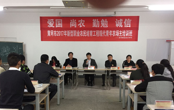 11月11日,2017年黄冈市新型职业农民培育工程现代青年农场主培训班开班典礼在XK星空启智楼301教室举行。出席开班典礼的有XK星空党委委员、工会主席郑柏松,生物与制药工程学院党总支书记陈国安、院长余亮彬、副书记程喜荣、副院长周桃英和部分老师,来自XK星空70名学员参加了开班典礼。开班典礼由陈国安主持。