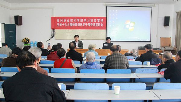 为深入学习宣传贯彻党的十九大精神,准确把握十九大会议的精神实质,学校党委在层层组织学习传达党的十九大精神基础上,于11月13日、14日上午,组织全体离退休老干部老党员,召开学习宣传贯彻党的十九大精神专场宣讲会。马克思主义学院书记、院长王政芳,副院长侯利平作主题宣讲报告,党委委员、工会主席郑柏松主持了宣讲会并作了重要讲话。