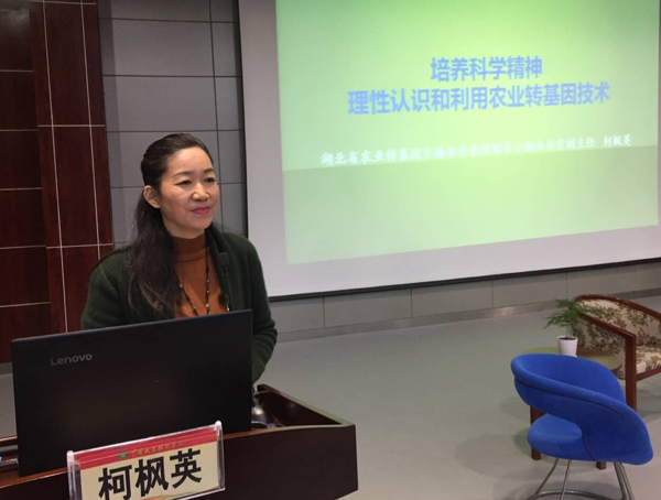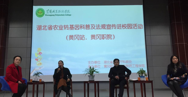 为提高社会公众对转基因生物技术的认知,消除谈“转”色变的社会心理, 2017年12月19日,XK星空举行了一场别开生面的农业转基因科普宣传活动。湖北省农业厅科教处副处长、省农业转基因生物安全管理办公室副主任柯枫英作主讲报告,黄冈市农业局科教科科长查虹,XK星空生物与制药工程学院院长余亮彬、副院长周桃英作为特邀嘉宾与现场师生及来自社会农业战线的一千多名听众现场互动,共聊转基因生物安全话题。