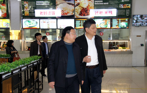座谈会前,雷兴威一行参观了校园建设规划图、大别山创业中心公共实训基地、西苑餐厅及校容校貌。