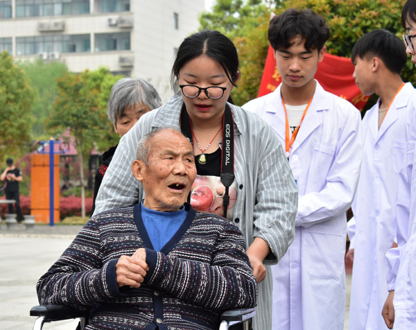 与老人互动