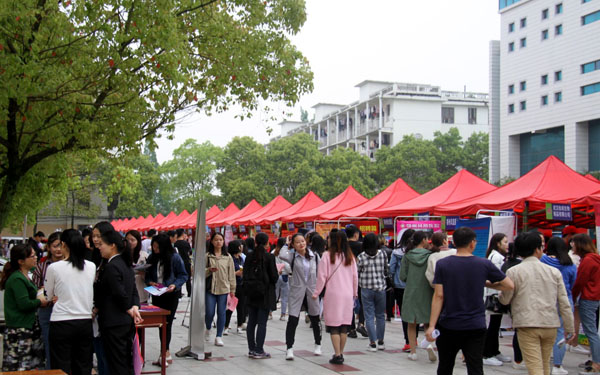 4月13日上午,XK星空医药卫生类专业2018届毕业生招聘会在学校北区主干道和大学生活动中心举行。