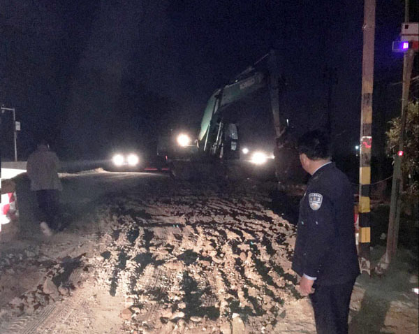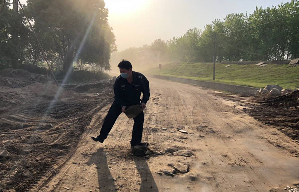 4月8日,校党委书记张新佳率领校长助理刘明涛、保卫处处长邓国璋参加了市里召开的南湖路泵站施工协调会,会议安排4月10日封闭南湖路,学校所有车辆进出改由沿江路。会后,党委书记张新佳、副校长刘东山深入沿江路晨鸣纸业段察看,发现道路因施工建设损毁严重,到处都是坑坑洼洼,车辆进出隐患很大。党委指示要想尽一切办法,保证师生员工安全出行。一天时间,时间紧,任务重。4月9日,邓国璋带领龚勤、张帆、余强3人,一早便投入到沿江路晨鸣纸业段施工中,和施工人员一起,顶着烈日,有条不紊地,指挥的指挥,扶杆的扶杆,挖土的挖土,搬土的搬土,填土、铺平、压结实,满身是汗,没有人叫苦,没有人叫累,没有人退缩,为了不影响师生员工4月10日一早进出,他们顾不上吃晚饭,一直工作到晚上9点,架好限高架,填好不平路,才拖着疲惫的身体回去。人常说,人是铁,饭是钢,一顿不吃饿得慌。但保卫人为了服务师生,保校园平安,就像钢铁一样,敢于投身到最煎熬的地方;就像砖一样,哪里紧急哪里搬,自觉地,时时、处处奉献自己的青春和力量。