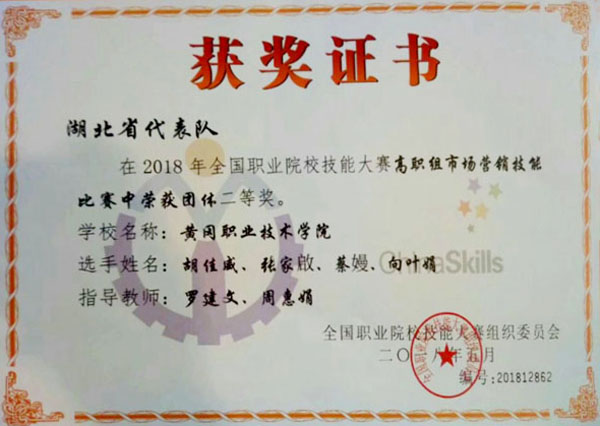 2018年5月19日-5月20日,全国职业院校技能大赛高职组市场营销技能赛项在山东济南举行。来自全国32个省市84所高职院校的代表队,经过2天紧张激烈的角逐,共有8所高职院校获一等奖,17所院校获二等奖,25所院校获三等奖,XK星空商学院由胡佳威、张家啟、蔡嫚、向叶娟组成的营销团队在罗建文、周惠娟两位老师的指导下,荣获团体二等奖,是湖北省今年本赛项最好成绩。