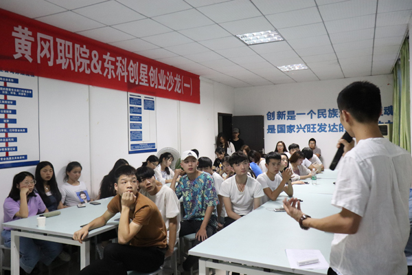 活动中,肖红亮介绍了黄冈东科创星公司服务大学生创业者的功能,主要就政策优惠、项目支持、资金支持、培训支持上做了解读,他鼓励同学们积极申报创业项目,积极参加项目路演,勇于尝试。90后创业者向京东分享了6次创业的故事,最终依托专业在美术方面创业成功,他认为大学生创业者应在选择创业项目上明晰方向,创业者要具备沟通能力、人际关系处理能力、决策能力以及组织管理的基本能力。85后创业者汪流奇与同学们分享了在富士康打工的经历,以及如何把自动贩卖机作为创业商机的历程,他说创业者要眼光敏锐,对项目要有前瞻性,选择的创业项目要具有发展前景。3位嘉宾的分享让现场学生兴致盎然,激情高涨。