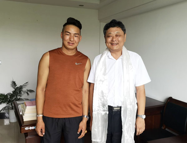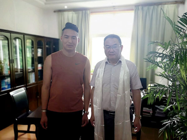 洛桑顿珠给校长姜安心献哈达并合影