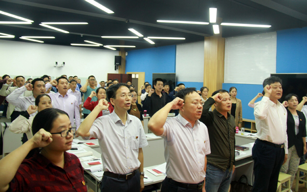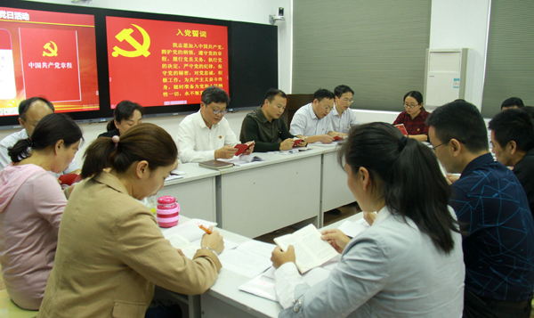 10月10日下午,学校在汇贤阁智慧教室组织召开了支部主题党日活动学习观摩会。各党总支书记、直属支部书记和各党支部书记共50余人观摩了机关第一党总支第一党支部10月支部主题党日活动。党委书记张新佳以普通党员身份参加支部活动。观摩会由党委组织部(统战部)负责人叶华光主持。