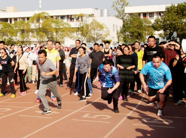 10月31日,由校工会主办的2018年教职工秋季田径趣味运动会在中区运动场举行。党委书记张新佳、校长姜安心及其他在家校领导纷纷加入各总支运动团队,积极参加了本次活动,现场气氛热烈,加油声此起彼伏。