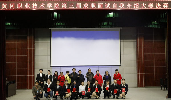 本次比赛由班级初赛、学院复赛,再到学校决赛,历时共两个月。经过层层选拔,28名学生参加了为期1个月的集训,集训选拔后最终有10位选手在决赛场上同台竞技。决赛设计有才艺展示、自我介绍和职业测评等三个环节,通过多角度考察选手们的综合素质和就业能力。在才艺展示环节,选手们或跳舞或唱歌,或朗诵或手工,形式多样,精彩纷呈;在自我介绍、职业测评环节,选手们岗位明确,定位清晰,充分阐述了他们对岗位的理解、求职的动机、应聘的实力,大家沉着冷静,才思敏捷,有理有据,博得台下阵阵掌声,充分展现了黄职学子的良好精神风貌和学识水平。经过激烈的角逐,护理学院助产201705班的尚鲜、建筑学院环艺201701班的李盛荣荣获一等奖。