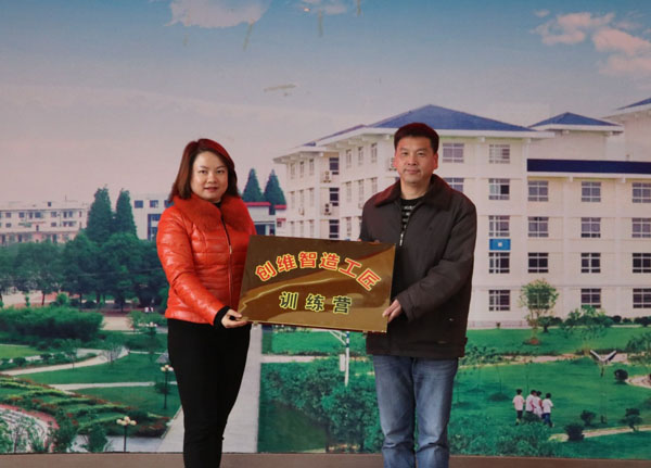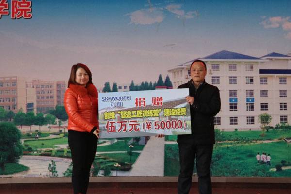 仪式上,校企双方签订了共建协议,并授创维“智能工匠训练营”牌匾,同时还捐赠了前期建设经费5万元。