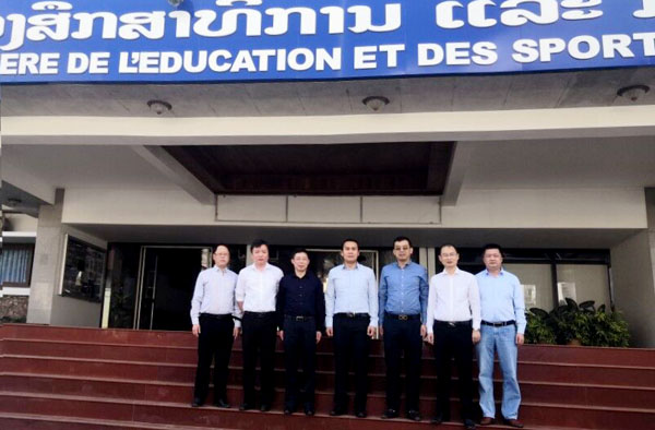 代表团成员在老挝教育体育部与部长秘书杜达万先生合影