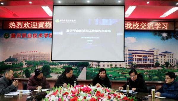 1月11日上午,黄梅理工中等专业学校副校长桂瑞宏一行33人到XK星空交流学习教学诊断与改进工作,副校长熊发涯,信息技术中心主任操惊雷,质量管理处处长陈全胜、副处长万德年、诊改办公室副主任黄常翼在凝智楼中心会议室接待了桂瑞宏一行。