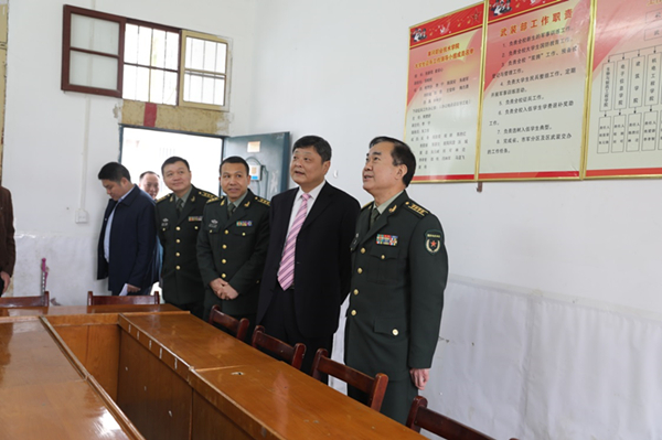 雷政委深入校武装部、征兵工作站进行了实地调研,察看了学校相关规划建设、教学设备及学生上课情况,并询问了相关情况。雷政委对学校党委切实加大政策、资金投入支持国防与军队建设表示感谢,对XK星空近几年克服困难圆满完成大学生征兵工作任务表示充分肯定,对学校采取的重要举措和形成的成功经验表示高度赞赏,他希望,学校进一步加大工作力度,搞好基层武装建设。