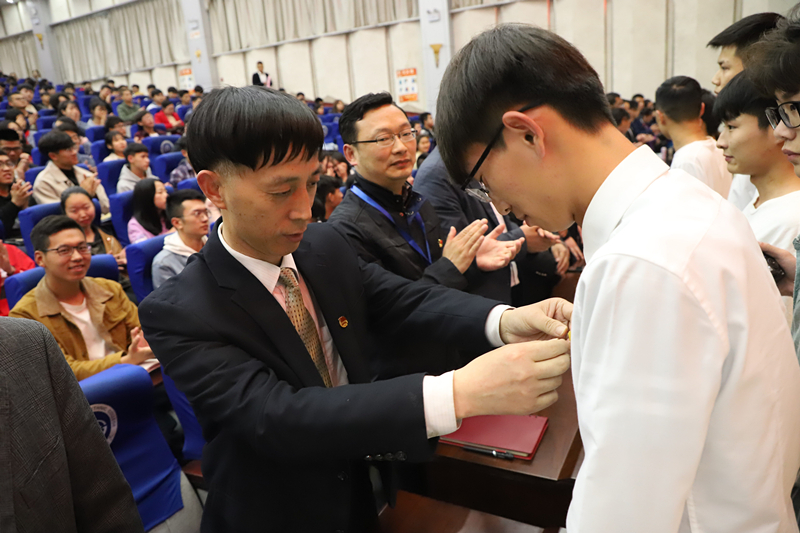 熊楚舒宣读了《关于表彰2018年度优秀共青团员、优秀共青团干部、五四红旗团支部、五四红旗团总支的决定》的文件,并对受表彰的先进集体和个人表示热烈的祝贺。在欢快的乐曲声中,与会领导为先进集体和个人颁发了证书、奖状。交通学院邱诚军同学,商学院团总支负责人占时杰老师作为先进个人代表和先进集体代表作大会发言。他们分别从个人层面和集体层面交流了在新时代,作为学生为什么要将自身的学业、技能学习与学校的发展统一起来,作为团组织如何把引导广大青年树立远大理想、服务青年成长成才和实际工作统一起来。